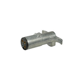 4-Way Connector Plug, Packaged. Latest design die cast 4-pole unit incorporating many new and improved features. Extended exterior and socket conceals terminals. Unique cable clamp prevents chafing - gives more cable support - saves installation time. Integral finp-pr erins for nositivp null - never shakes loose. Stainless steel spring. Dust and water resistant. Polarized. Heavy duty 6-way & 4-way terminals accept up to #12 gauge wire. Two 1/4" mounting holes on 4-way sockets, 2-7/8" on center. Mounts through 1-3/8" dia. hole.